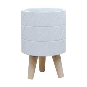 ΚΑΣΠΩ ΛΕΥΚΟ ΤΣΙΜΕΝΤENIO ΠΟΛΥΓΩΝΟ ME ΞΥΛΙΝΑ ΠΟΔΙΑ Φ19.5x18.5/28.5cm 4/ΚΙΒ