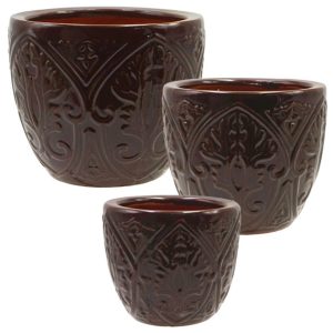 CERAMIC GLAZED CASPO SET/3 BROWN ROUND EMBOSSED MOTIBO