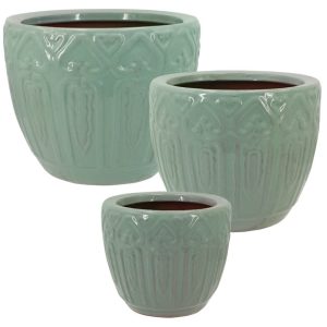 CERAMIC GLAZED CASPO SET / 3 ROUND TERRAMAN EMBOSSED PATTERN