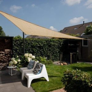 Triangular shade cloth 285gsm angle 90° 4x4x5,7m. Ecru